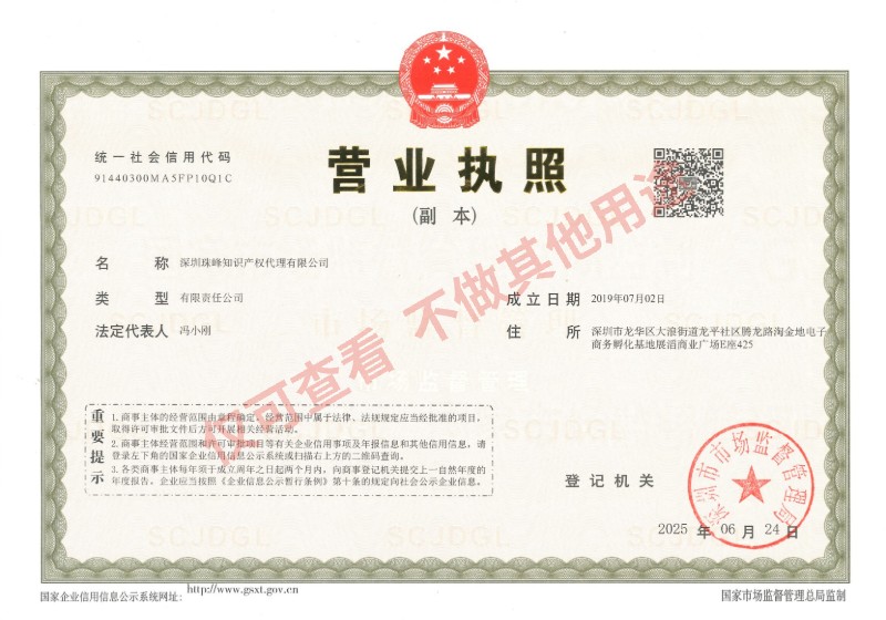 深圳珠峰知识产权代理有限公司是一家经国家知识产权局批准代理备案的,专业从事国内外专利、国内外商标、版权、集成电路布图设计、专利复审与专利无效、知识产权维权、侵权预警、知识产权管理、知识产权培训、知识产权体系建设等业务的综合知识产权公司。
